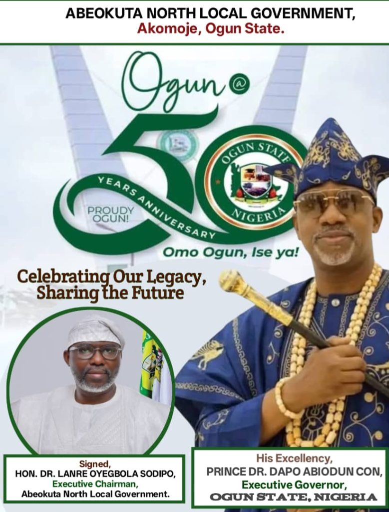 As part of the celebration of Ogun @ 50, the Chairman of Abeokuta North Local Government, Dr. ‘Lanre Oyegbola-Sodipo has staged a befitting anniversary celebration for the People in the Local Government, he urged the dwellers to support the present Government of the led Administration of Prince Dapo ABIODUN CON, Ogun State Governor.